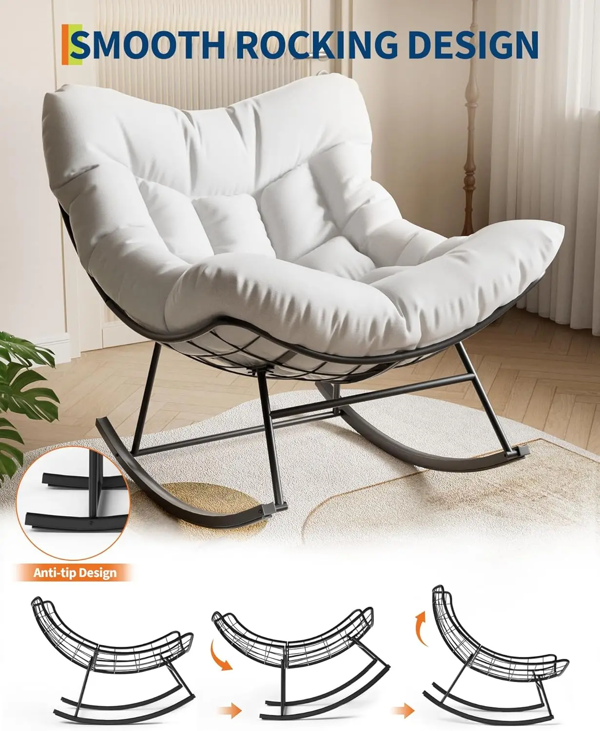 --- 350 LB WEIGHT CAPACITY & INDUSTRIAL FRAME: Reinforced with powder-coated steel and precision welds, this outdoor rocking chair supports up to 400 LBS. Anti-tip base ensures safe, smooth glides for adults, kids, or pets.